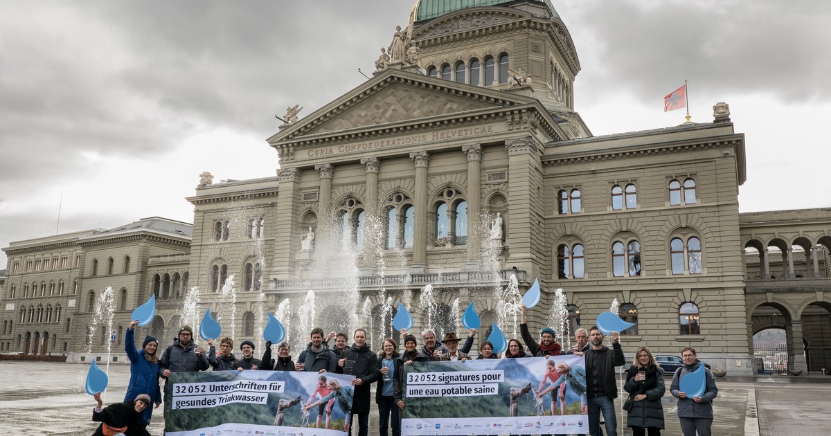 Le 30 mars 2026, nous avons franchi une étape importante : l’appel en faveur de l’eau potable, signé par plus de 32 000 personnes, a été remis au Conseil fédéral et au Parlement. Grâce à votre soutien, nous avons réussi notre pari et nous souhaitons vous en remercier chaleureusement.
